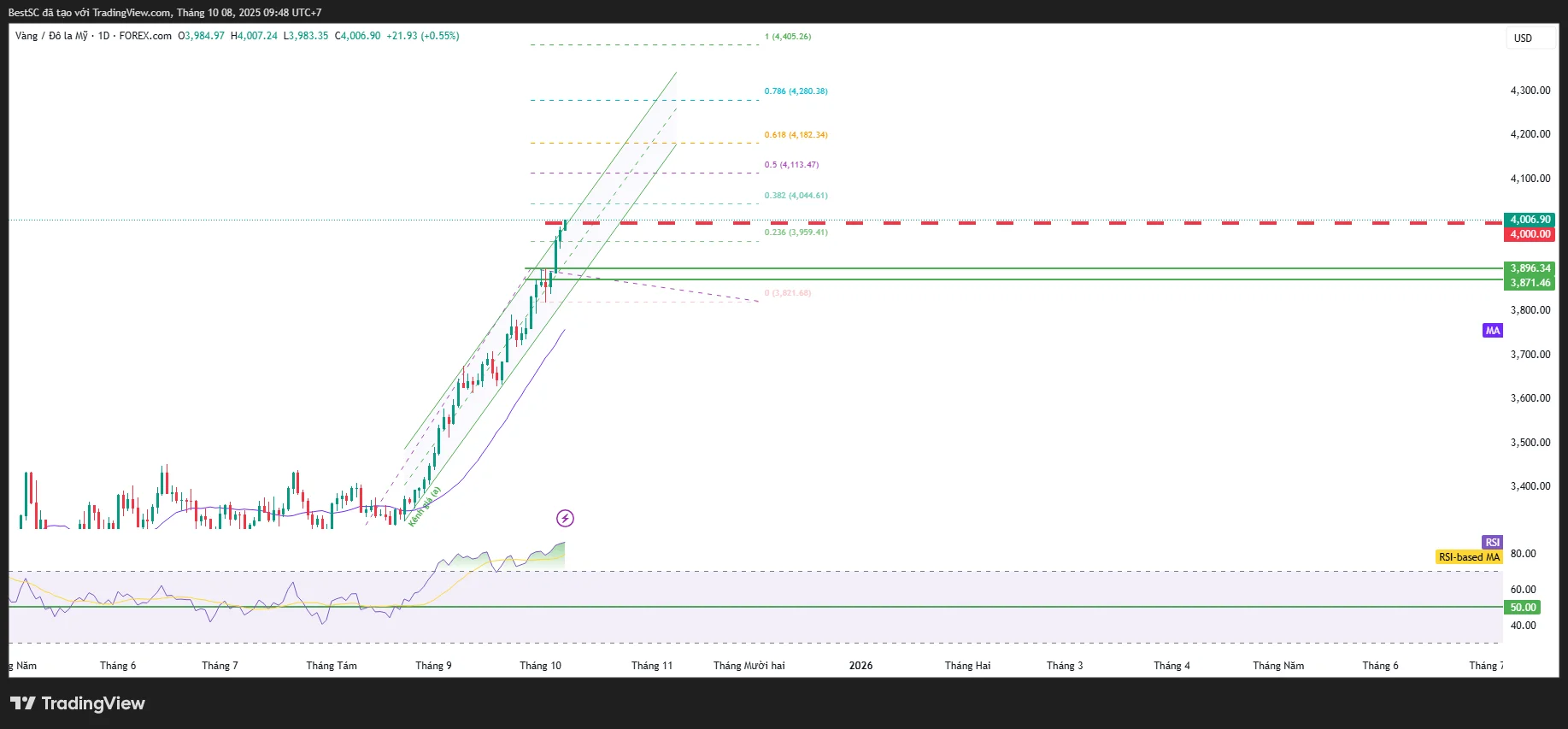 - Entry hợp lý: Chờ giá điều chỉnh về vùng 3.960–3.970 USD (hỗ trợ Fib 0.236) rồi canh mua theo xu hướng (Buy the dip).