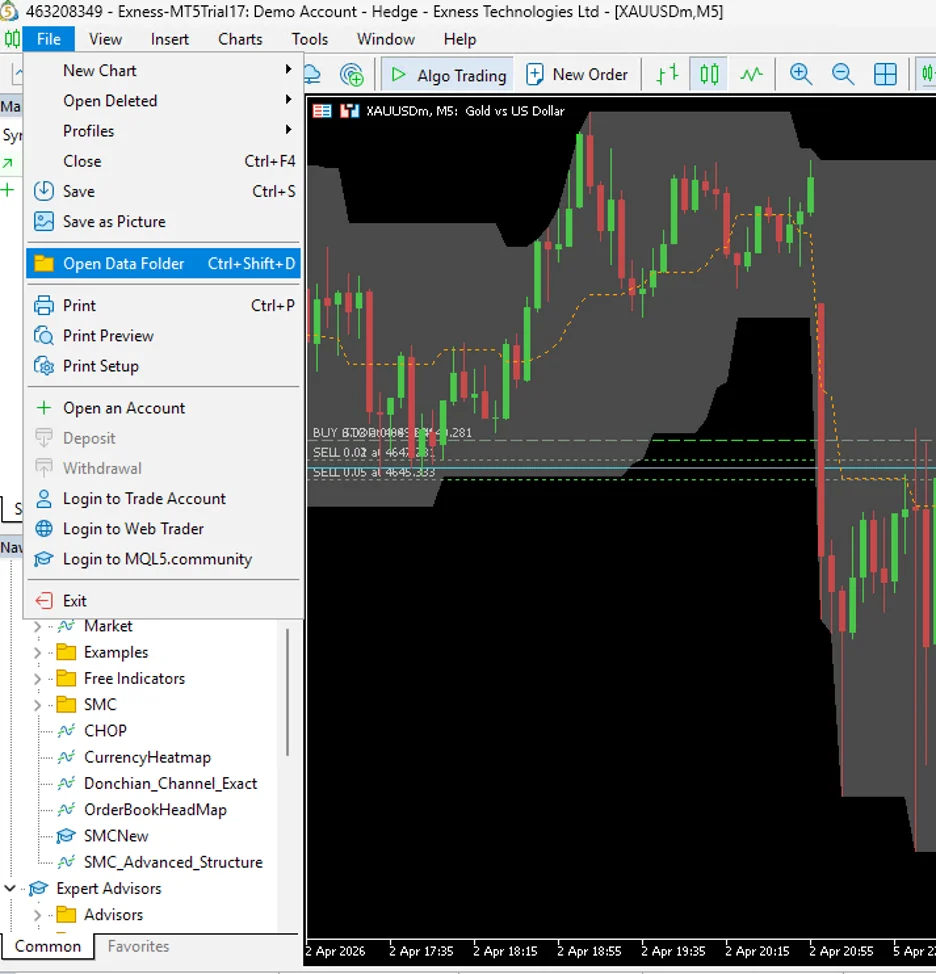 • Trên MT5 → chọn File → Open Data Folder