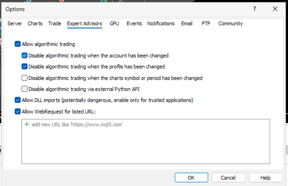 • ✅ Allow Algo Trading