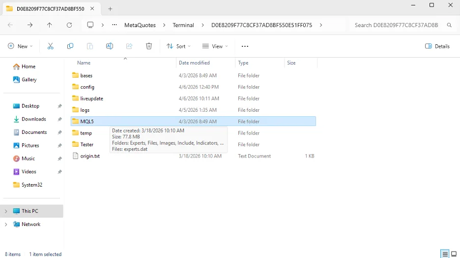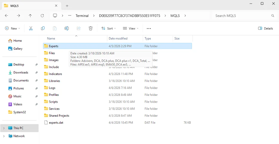 • Vào: MQL5 → Experts