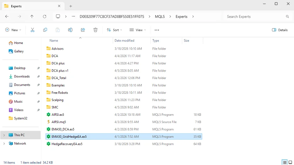 2. Cài đặt EA vào MT5