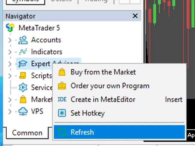 • Chuột phải vào Expert Advisors → Refresh