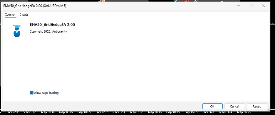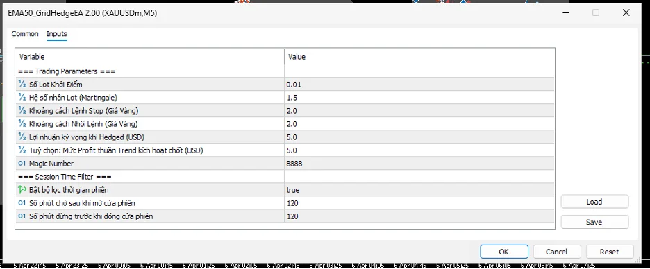 • Kéo EA từ Navigator vào chart