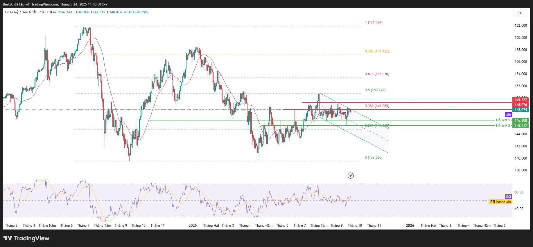 Kịch bản tăng: Nếu vượt 149.22, mục tiêu kế tiếp là 150.7 – 153.3.