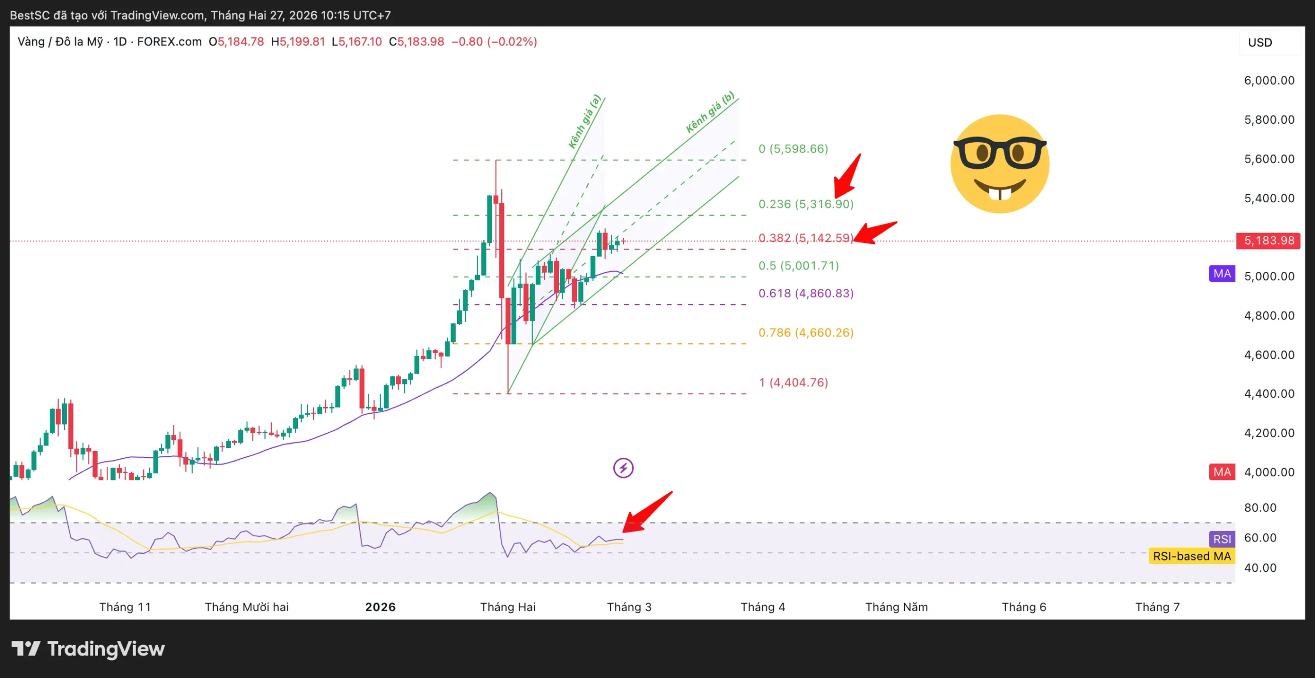 • 5.400 – 5.600 USD (biên trên kênh giá, mục tiêu mở rộng)