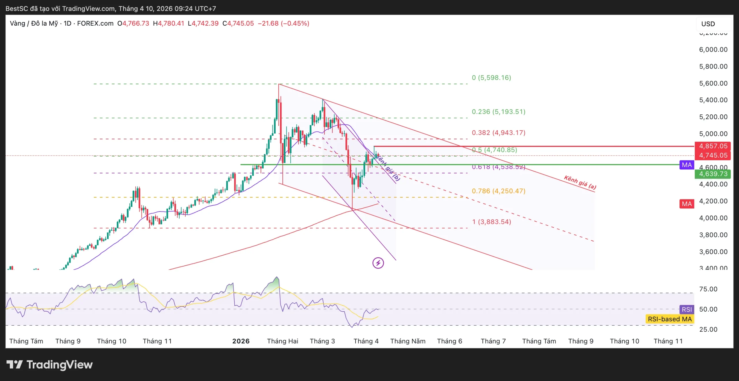 Rủi ro: Nếu giá mất lại vùng 4,63x–4,65x (EMA21 + cạnh kênh), cú break sẽ bị phủ nhận, thị trường có thể quay lại xu hướng giảm và điều chỉnh sâu về 0.786 (~4,250USD).