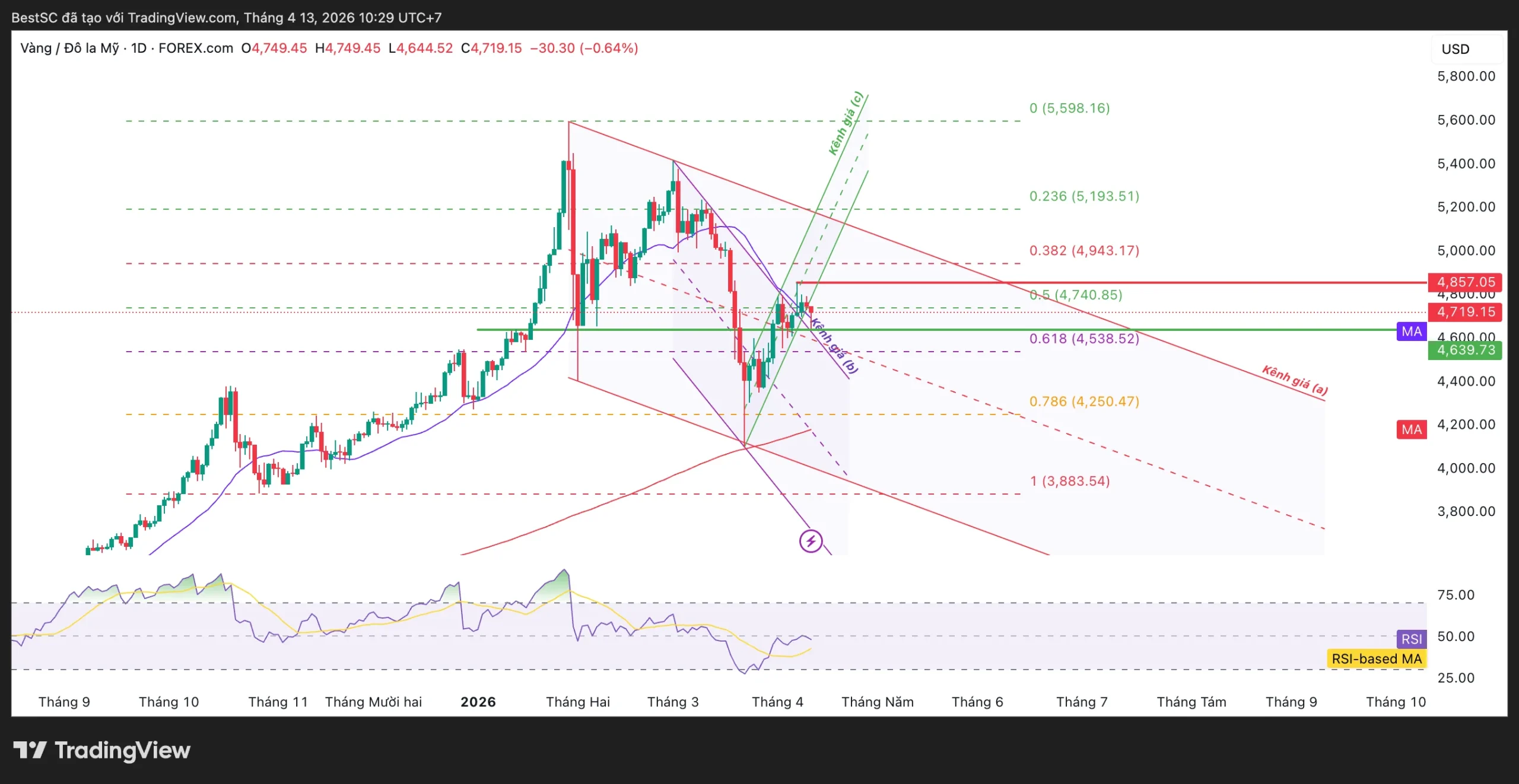 • Nếu mất vùng 4.639USD, cấu trúc hồi sẽ bị phá → có thể quay lại test 4.538 USD (Fib 0.618), sâu hơn là 4.250 USD (Fib 0.786)