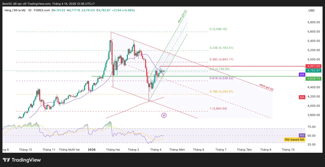 Điều này cho thấy nếu giữ được trên vùng 4.700–4.740USD, giá có thể tiếp tục mở rộng nhịp hồi lên các mốc cao hơn.