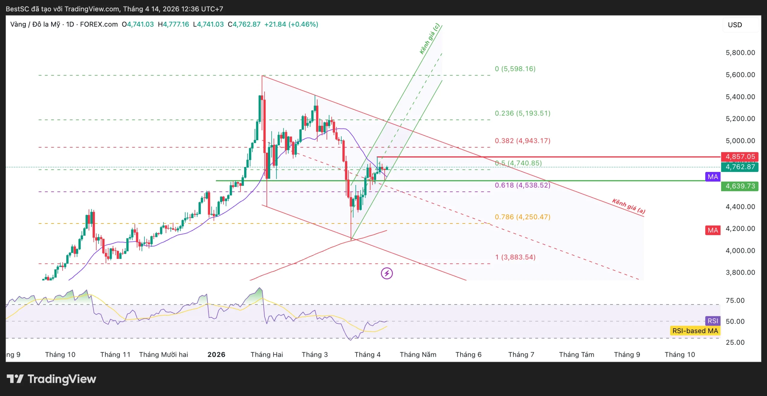 • Fib 0.5 (~4.740 USD): đã chạm và phản ứng