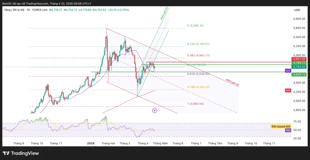 • Yếu tố rủi ro giảm: giá vẫn nằm dưới kháng cự ngang 4.857 USD và bị chặn bởi cạnh trên kênh giảm; chưa có breakout rõ ràng nên xu hướng lớn vẫn là điều chỉnh.