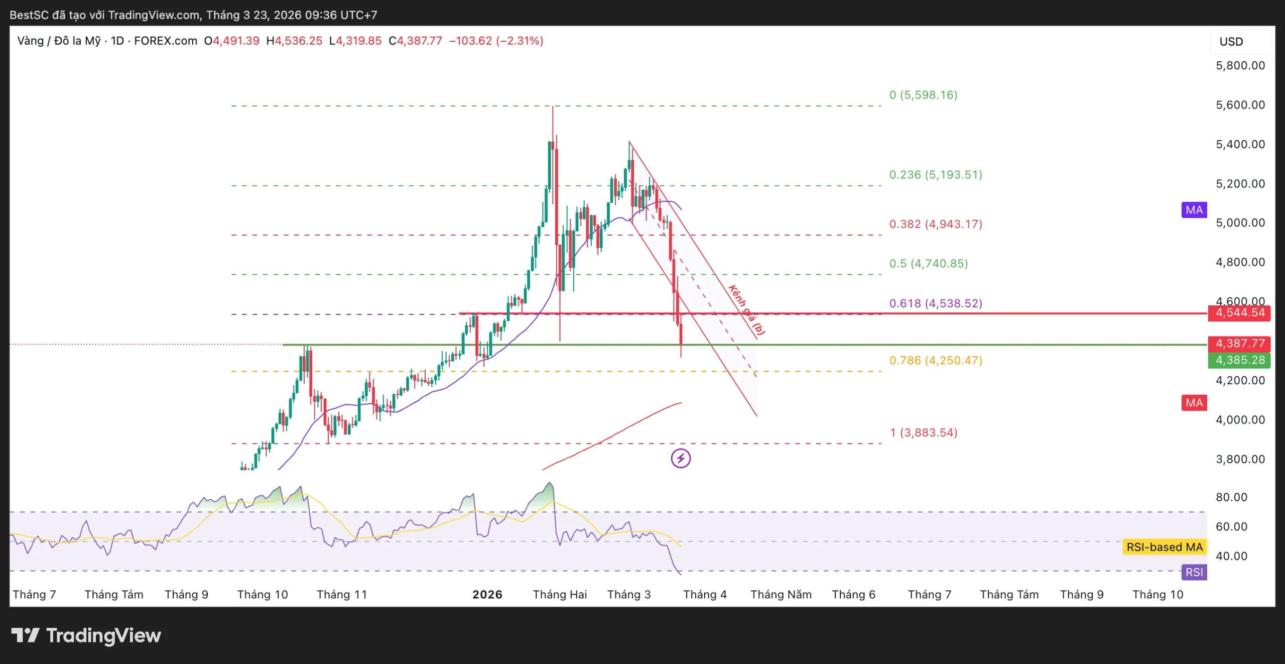 • Ngắn hạn: 4.250 USD (Fib 0.786)