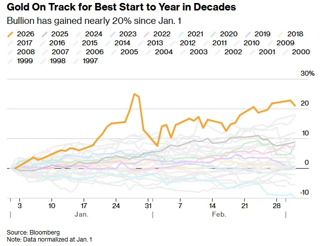 Tính từ đầu năm, vàng vẫn tăng khoảng 20%, sau khi lập đỉnh lịch sử trên 5.595 USD/ ounce cuối tháng 1.