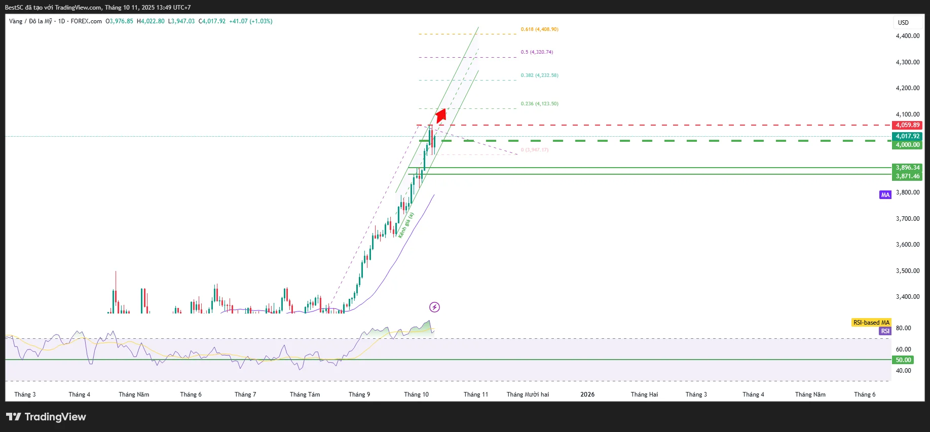- Nếu bứt phá dứt khoát trên 4.059 USD, mục tiêu kế tiếp sẽ hướng đến vùng 4.230 – 4.320 USD trong ngắn hạn.