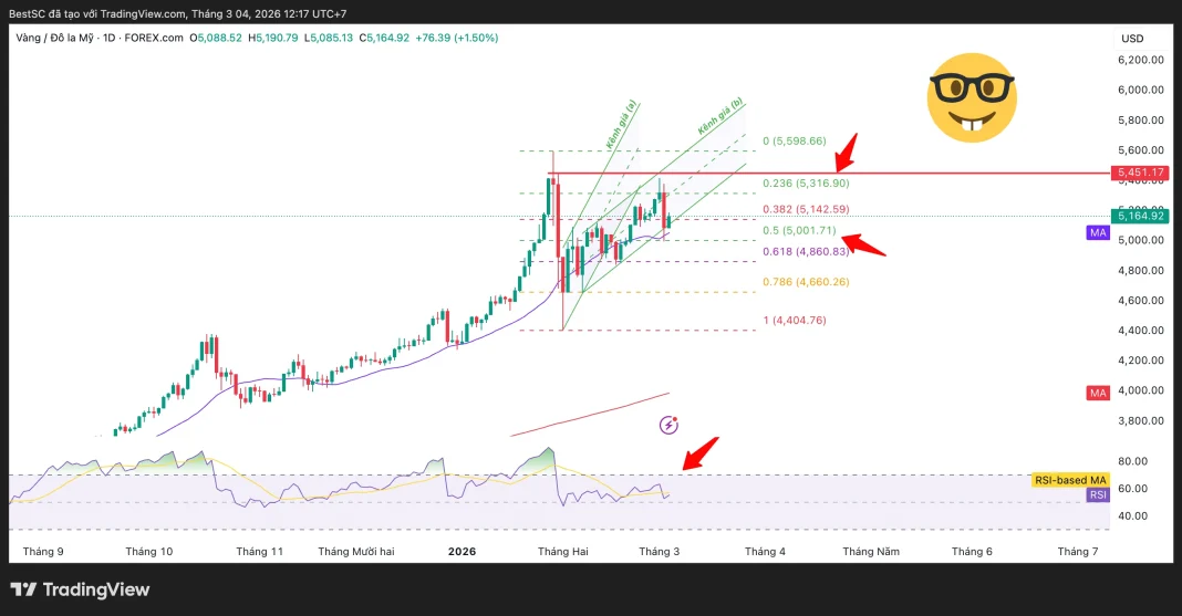 - Mục tiêu ngắn hạn: kiểm tra lại 5.316USD, xa hơn là vùng đỉnh 5.450USD.
