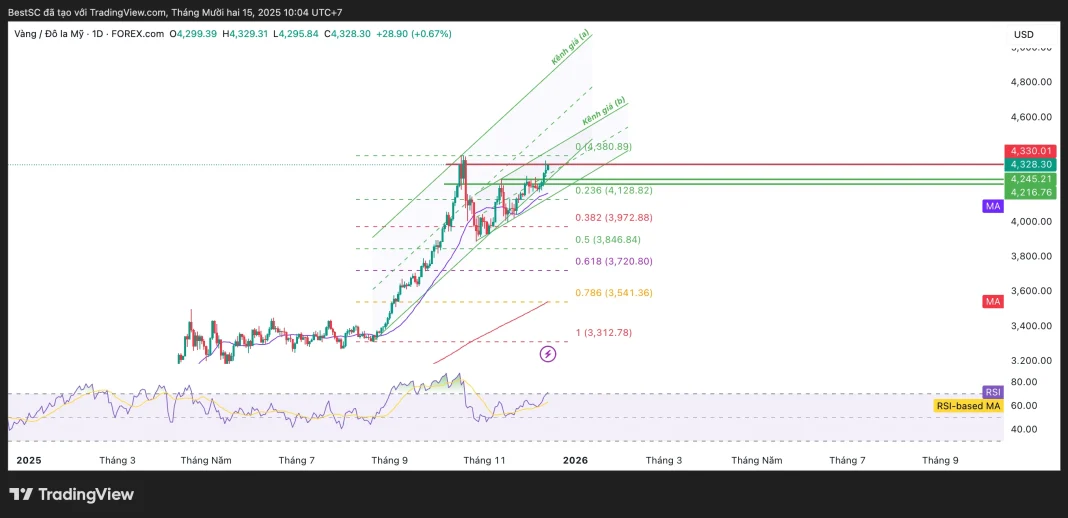 Điều kiện then chốt để vàng hướng tới vùng đỉnh mọi thời đại nằm ở khả năng giữ vững trên 4.300USD và đóng cửa ngày vượt 4.330USD, vùng cản tâm lý và kỹ thuật đã kìm hãm giá trong nhiều tuần. Một cú phá vỡ rõ ràng tại đây sẽ mở ra không gian giá mới, khi thị trường bước vào trạng thái “price discovery”, nơi các mức kháng cự truyền thống gần như không còn nhiều ý nghĩa.